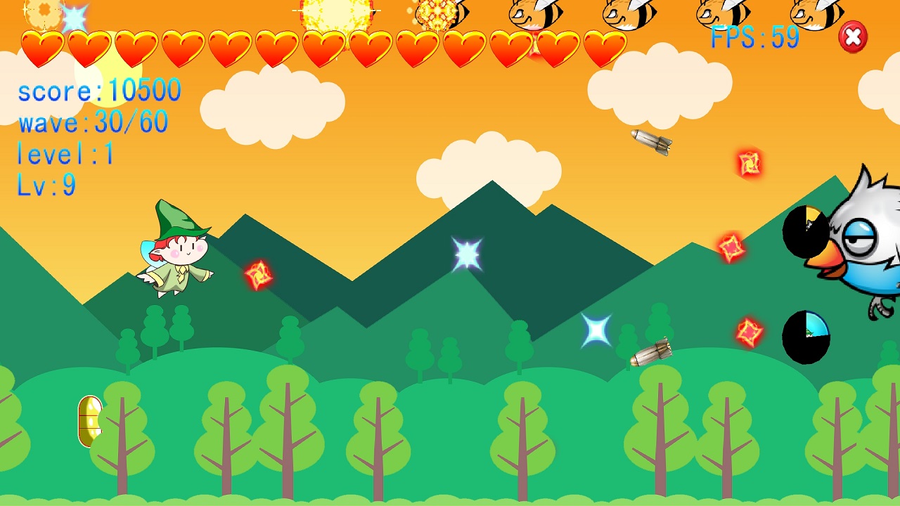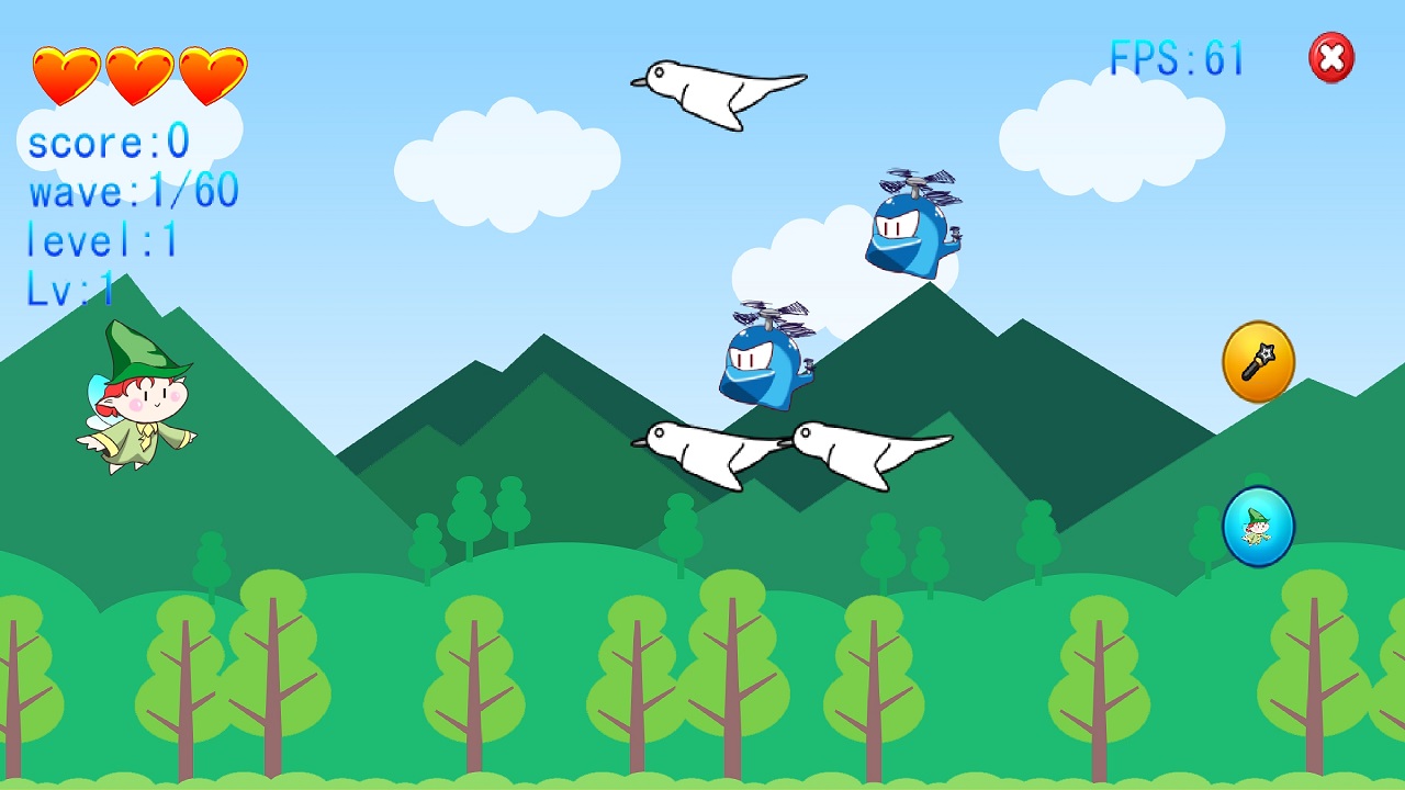 ,核心玩法使用 左边触屏 控制飞行,飞鸟配合流畅的天空动画效果增强整体视觉体验 。呈直线飞行并发动基础攻击。乐园召唤小弟