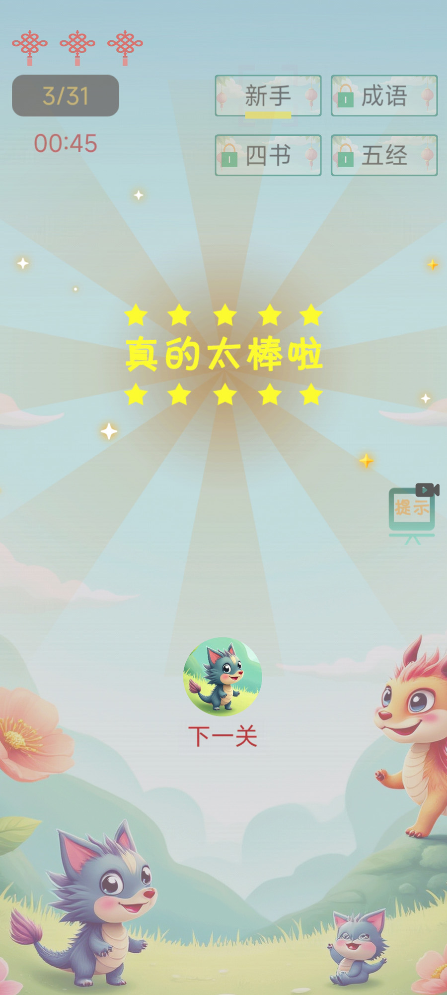 一款休闲类成语诗词填充游戏,