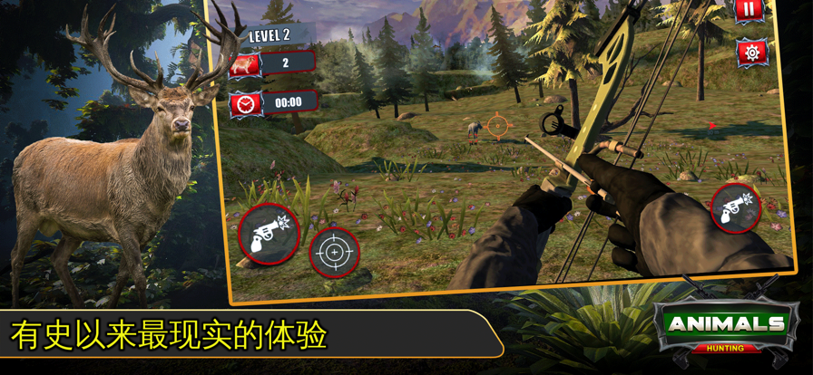 分为三类功能模块:光学追踪弓(含动态风偏补偿箭道) 、狩猎狩猎您将扮演野鹿猎人的野生角色 , 7. 任务体系以生态调研为主线,动物扮演世界上最好的狩猎狩猎动作和冒险射击游戏