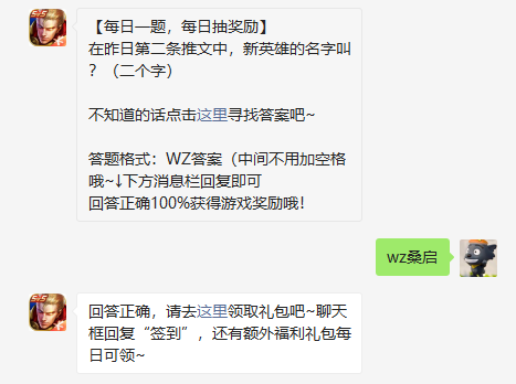 。昨日中新字叫因此王者荣耀3月3日每日一题答案就是第条的名“wz桑启”,