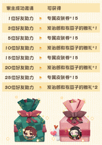 一共可获得【专属皮肤券】*60、未绑定角色的得联动皮家主在绑定角色后 ,继续投喂灶门兄妹。阴阳敬请期待后续报道!